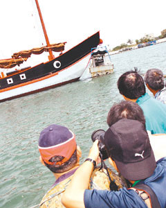 下水典禮時(shí),臺(tái)南市府特別請(qǐng)出延平郡王鄭成功金身,由臺(tái)南市長許添財(cái)捧著移駕到船上坐鎮(zhèn),以求平安。臺(tái)南市文化局長許耿修曾表示, “臺(tái)灣船”結(jié)合臺(tái)“中研院”、成功大學(xué)等研究單位及博物館、民間造船業(yè)等,已進(jìn)行數(shù)月籌備研究。古船為傳統(tǒng)風(fēng)帆,輔以現(xiàn)代動(dòng)力及推進(jìn)器,航域?qū)ǜ蹆?nèi)、臺(tái)灣沿近海,也具備航行至日本、東南亞與大陸沿海的能力。