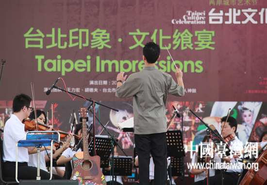 中國臺灣網6月16日上海消息 16日上午,臺北市立交響樂團在上海世博園內演出。當天,“臺北印象·文化饗宴”演出活動在上海世博園城市廣場舉行。(中國臺灣網 田云鵬 攝)