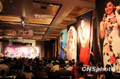 5月7日,一代巨星鄧麗君逝世15周年前夕,海峽兩岸、香港、日本等藝文界知名人士聚首臺(tái)北,以連辦4場(chǎng)紀(jì)念研討會(huì)方式憶談、緬懷鄧麗君。圖為臺(tái)北君悅大飯店現(xiàn)場(chǎng),一側(cè)懸掛鄧麗君的大幅照片,伊人音容宛在、楚楚動(dòng)人。 中新社發(fā) 董會(huì)峰 攝