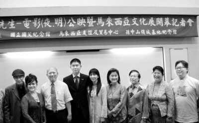 25日下午,馬來西亞檳城孫中山基地紀念館組團在臺灣“國父紀念館”舉辦電影《夜·明》公映。《夜·明》敘述孫中山在檳城宣揚革命的事跡,影片在檳城實景拍攝,由大陸、臺灣、香港和馬來西亞華人演員共同演出。1906年至1911年,孫中山曾5度到馬來西亞檳城,歷經艱辛尋求當地民眾支持他策動黃花崗起義。圖為《夜·明》公映記者會上嘉賓合影。(記者 徐蕾)