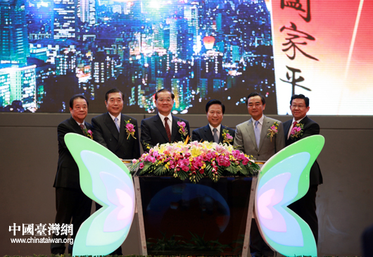 “江蘇臺灣周暨2010(南京)臺灣名品交易會開幕式”今天上午在南京國際博覽中心舉行。江蘇省委書記梁保華,中共中央臺辦、國務院臺辦主任王毅,中國國民黨榮譽主席連戰等共同按下啟動按鈕,啟動2010“江蘇臺灣周”。(中國臺灣網 鐘寶華 攝)