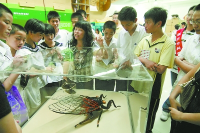 9月17日至11月12日,來(lái)自臺(tái)灣自然科學(xué)博物館的《鳴蟲(chóng)特展》在福州科技館舉辦。鳴蟲(chóng)是指善鳴之蟲(chóng),常見(jiàn)的鳴蟲(chóng)有蟋蟀、蛐蛐等。鳴蟲(chóng)大多依靠土壤生活,是城市自然環(huán)境保護(hù)程度的指示物種。該展通過(guò)介紹鳴蟲(chóng)的發(fā)音目的、發(fā)音方式等,用鳴蟲(chóng)與人類(lèi)之間的密切關(guān)系來(lái)揭示環(huán)境保護(hù)、生態(tài)保護(hù)的重要性。據(jù)悉,與展覽配套的相關(guān)科普活動(dòng)也將陸續(xù)展開(kāi),如蟲(chóng)蟲(chóng)音樂(lè)會(huì)、觀展體驗(yàn)活動(dòng)以及專(zhuān)題科普講座等。圖為臺(tái)灣自然科學(xué)博物館動(dòng)物學(xué)組博士詹美鈴正在向?qū)W生們講解鳴蟲(chóng)知識(shí)。(吳恩兒)