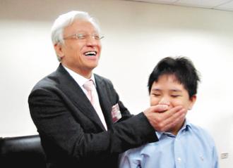 聯電董事長曹興誠15日獲頒臺大杰出校友,首度帶著小兒子一起亮相,兒子說以老爸為榮,“因為他聰明又有錢”,曹董笑著趕快把兒子嘴巴捂上。 圖片來源:臺灣《聯合報》