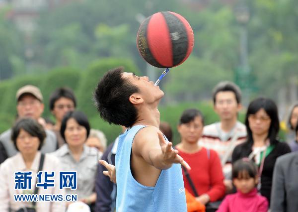 11月21日,街頭藝人在表演花式街頭籃球。當(dāng)日,臺(tái)北市文化局在孫逸仙紀(jì)念館舉行“2010年第二期街頭藝人審議”活動(dòng)。包括個(gè)人及團(tuán)體在內(nèi)共281組藝人報(bào)名,在為期兩天的活動(dòng)中考取表演藝術(shù)、視覺(jué)藝術(shù)、創(chuàng)意工藝等三大類別的證照。臺(tái)北市街頭藝人證照自2005年正式實(shí)施以來(lái),約900組街頭藝人已考取證照,領(lǐng)有證照的街頭藝人可在臺(tái)北市街頭表演。新華社發(fā)(吳景騰 攝)