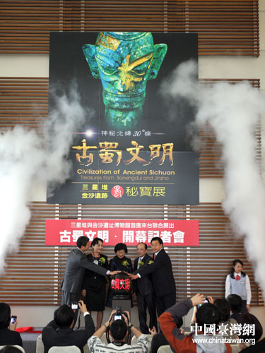 臺北是“神秘北緯30度線——三星堆、金沙古蜀文明秘寶展”的第一站,展至3月4日,此后還將到臺中、高雄巡回展出,于2012年6月10日結束。據介紹,展覽門票已經有近5萬人次預訂,主辦方預計,整個展覽將吸引40萬以上臺灣民眾參觀展覽。