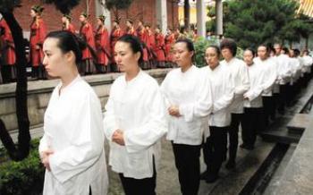 臺北市長郝龍斌擔任主祭官,他表示,由女生擔任禮生是跨時代的創(chuàng)舉,也象征著男女平等的觀念已深入人心。(中國臺灣網(wǎng) 李迪)