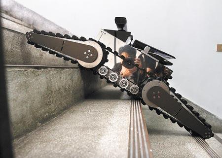 “NTNU CIR-I”的履帶式機(jī)器人,特色是不必人為操縱,可以自主偵測地形與判斷行走路線。(圖片來自臺(tái)灣《中國時(shí)報(bào)》)