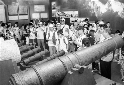 8月1日,長城文化之旅——海峽兩岸大學(xué)生文化體驗(yàn)營在秦皇島市山海關(guān)正式開營。來自大陸和臺灣的30名大學(xué)生將在河北和山西境內(nèi)開展長城考察活動,了解長城文化。圖為兩岸大學(xué)生在長城博物館參觀。楊寬攝(新華社發(fā))