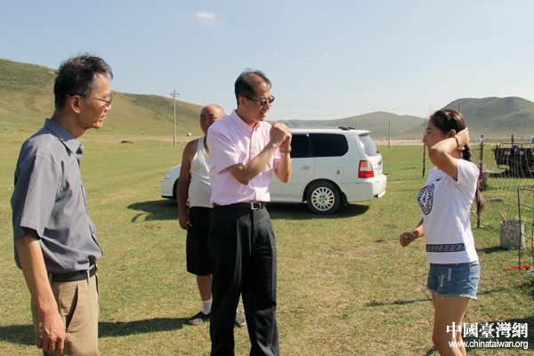 滕鴻年、吳國禎在草原與達(dá)日丹話別。(中國臺灣網(wǎng) 王思羽 攝)