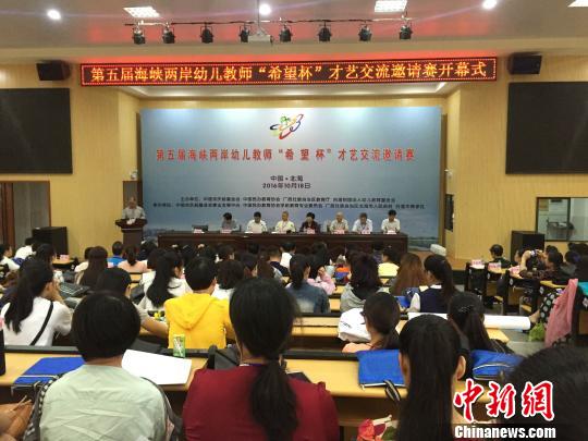 本月18日至19日,第五屆海峽兩岸幼兒教師“希望杯”才藝交流邀請賽在此間舉辦。該賽事由中國宋慶齡基金會、中國民辦教育協會、廣西壯族自治區教育廳、臺灣財團法人幼兒教育基金會聯合主辦,由廣西北海市承辦,旨在促進海峽兩岸幼兒教師深入交流、相互學習。