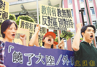 “教育部”次長周燦德失言,外籍新娘“教育部”前抗議。