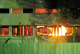 據了解,暴動外勞至少燒毀廠區一棟工寮,工寮為連棟式建筑,分隔成30多間房子,另放火燒毀一間車棚及多輛車子。暴動外勞并持彈弓攻擊路人及警方。