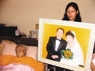 被關在巴拿馬的老船長端木惟鍇,八年前與妻子重拍結婚照,幸福洋溢,如今妻子憂心成疾(左),長媳拿著照片,企盼公公歸來。