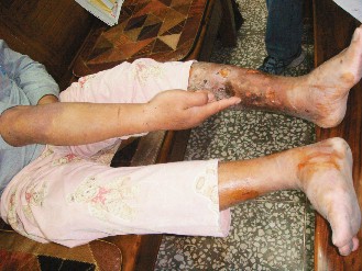 “警察先生救我!我要報案!”臺灣高雄縣岡山警分局警察昨天看到許某時,倒吸一口氣。他不但手腳浮腫,腳因鐵鏈長期磨擦,多處破皮潰爛流膿,臉頸滿布傷痕,“可說體無完膚”。可能因多日未進食,向警察討泡面吃,連吃兩碗。