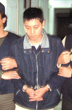 花蓮警方破獲男子陳柏誠(中)迷魂盜案,并劫財(cái)劫色,全臺至少約有11人受害。(臺灣《中國時(shí)報(bào)》圖;洪祥和攝)