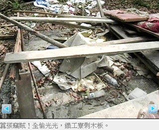 中國臺灣網3月15日消息 據臺灣東森新聞報道,南投中寮一位廖姓農民14日到工寮(農業資材室)巡視時,赫然發現整座鐵皮工寮不翼而飛,連鋤頭、鐮刀等鐵制的農具也被偷走。更夸張的是,竊賊還把偷來的小貨車開到山上解體,現場只剩一堆垃圾,讓農民痛罵這些竊賊真是太可惡。