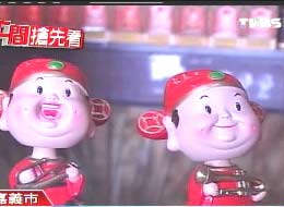 公仔創意,其實是廟方跟嘉義市府合作,把要送表演外賓的財神公仔,多制作300套,留給有緣的信徒,可愛的造型公仔也讓廟方信徒倍增,看來不景氣,民眾都想把財神爺請回家,希望能財源廣進。