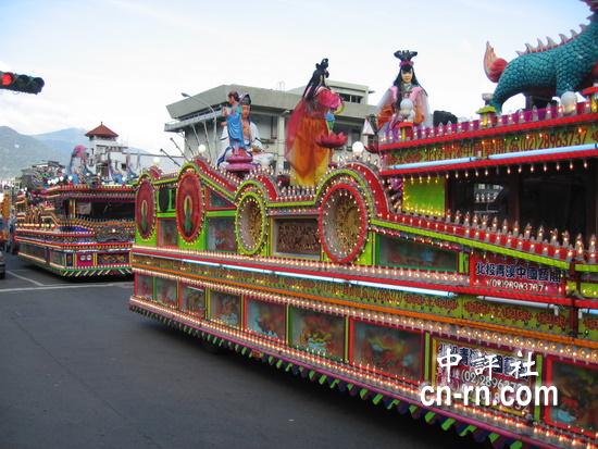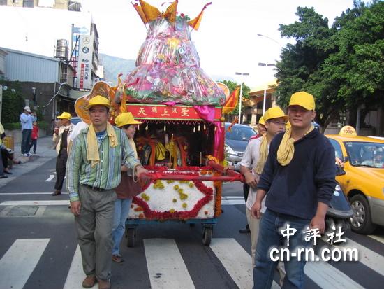 人民網4月20日電 據中評社報道,位于臺北市北投區的關渡宮祀奉媽祖,平日香火鼎盛,遇到媽祖誕辰繞境,信徒更不敢怠慢,按照臺灣民間傳統習俗,出動各式陣頭,為媽祖助威,沿路民眾也準備香案,放鞭炮、送紅包祈求媽祖保佑平安。