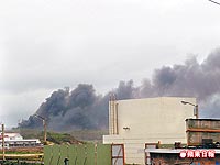 臺電核三廠啟動變壓器爆炸失火,廠區(qū)濃煙竄天際。來源:臺灣《蘋果日報》