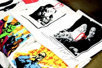 “蔣生活運(yùn)動(dòng)”首波商品共17款,分成4個(gè)系列,每個(gè)系列都發(fā)行包括T恤、筆記本和明信片。主要設(shè)計(jì)手法是運(yùn)用年輕人熟悉的普普風(fēng),將兩蔣的歷史照片、名言語(yǔ)錄轉(zhuǎn)為鮮艷、前衛(wèi)的圖案。