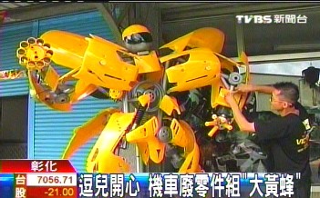 用摩托車(chē)零件組裝的“大黃蜂”。圖片來(lái)源:臺(tái)灣TVBS
