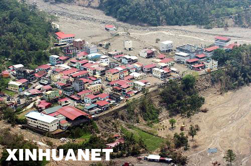 8月22日航拍的臺灣高雄縣那瑪夏鄉(xiāng)民生村受災(zāi)情況。