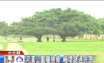 來(lái)到新海橋下的河濱運(yùn)動(dòng)公園,就在自行車(chē)往來(lái)頻繁、民眾慢跑散步的地點(diǎn),竟然傳出有殯葬業(yè)者光天化日之下,在公共場(chǎng)所曝曬尸骨。放了白布,整副人骨就隨地風(fēng)干,業(yè)者看管累了,還可以在一旁休息。民眾大嘆不衛(wèi)生,也會(huì)驚嚇到小朋友,就連附近的禮儀公司也說(shuō),這樣做對(duì)死者相當(dāng)不敬。