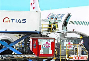 桃園航勤公司爆發搬運工偷竊旅客行李財物事件。圖為臺灣華航班機托運行李上機畫面。來源:臺灣《蘋果日報》