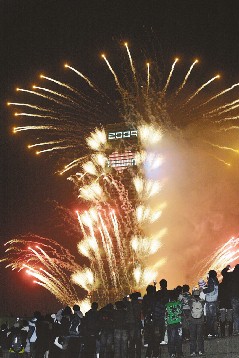 據臺灣“中央社”報道,臺北101大樓今天播放2010年跨年煙火秀規劃影片,這次的煙火秀全長與去年一樣是188秒。