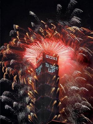 緊接上場(chǎng)的霹靂虎尾煙火,劈里啪啦撼動(dòng)全場(chǎng),101大樓外墻亮起“2010 Taiwan UP(意謂2010年臺(tái)灣會(huì)更好)”字樣,最后壓軸齊發(fā)1700發(fā)煙花,精采程度令人目不暇給,白閃花束、金閃虎尾等各款煙火齊升空,2.2萬發(fā)煙火、歷時(shí)188秒的煙火秀在歡呼聲中結(jié)束。