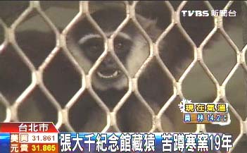 兩只長臂猿被關在臺北張大千紀念館長達19年。 來源:臺灣TVBS電視臺