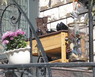 法官林德盛的陳姓密友行蹤成謎,陳女的別墅門外,有陳女外出常穿的馬靴、高跟鞋,樓梯旁的花草打理得很干凈。圖片來源:聯合報
