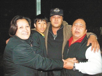 邱明源(右二)“死而復(fù)活”,昨晚回家喜極而泣。