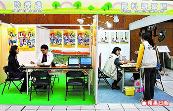 臺(tái)北車站昨設(shè)置甲流疫苗接種站,但接種不踴躍。來源:臺(tái)灣《蘋果日?qǐng)?bào)》