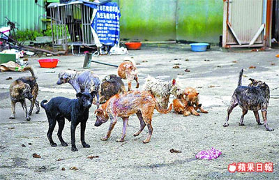 賈鴻秋狗場遍布狗的排泄物,場內(nèi)約150只狗幾乎都罹患皮膚病。 來源:臺(tái)灣《蘋果日報(bào)》