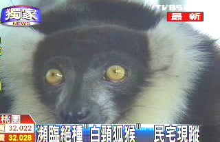 據臺灣TVBS報道,動畫片里隨著音樂擺動起舞的猴子,看起來相當逗趣可愛,這就是白頸狐猴,是一種馬達加斯加瀕臨絕種的保育類動物,白頸狐猴不是臺灣的原生物種,也因此它一出現在臺灣,獨特的外貌立刻吸引大家目光。