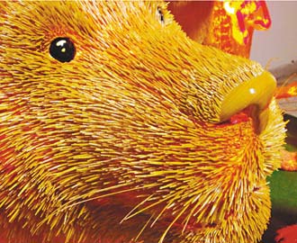 “最難的就是用牙簽做出老虎毛!”為了展現(xiàn)虎毛的柔順,每根牙簽要削出不同長度,他黏牙簽、削牙簽到滿手是傷,一個10平方厘米的“虎皮”就要花一天,“尤其是尾巴,彎來彎去,一失敗就要重貼,現(xiàn)在看到牙簽就怕”!