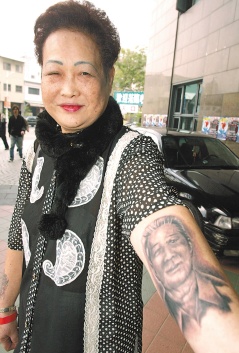 中國臺灣網3月13日消息 據臺灣《聯合報》報道,婦人莊陳枝女忘不了丈夫莊金珍生前對她的好,昨天南下高雄參觀紋身大展,當眾卷起袖子,伸出手臂接受麻痛,把丈夫的相貌紋在手肘內側;她說:“這樣又可以天天跟老公在一起了,夜里還可枕著他睡覺!