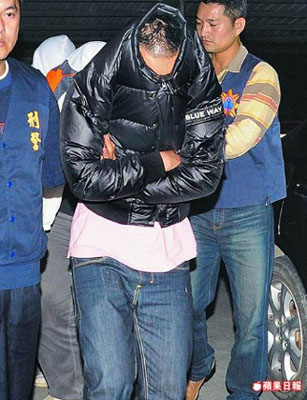 臺警方昨晚帶回涉嫌砍死人的嫌犯、臺軍現役軍人劉原汶(中)等5嫌犯漏夜偵訊。 來源:臺灣《蘋果日報》