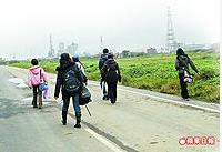 拖著疲累的身體,學生在最后一天到桃園縣觀音鄉聚集地點,交換流浪心得。圖片來源:臺灣《蘋果日報》