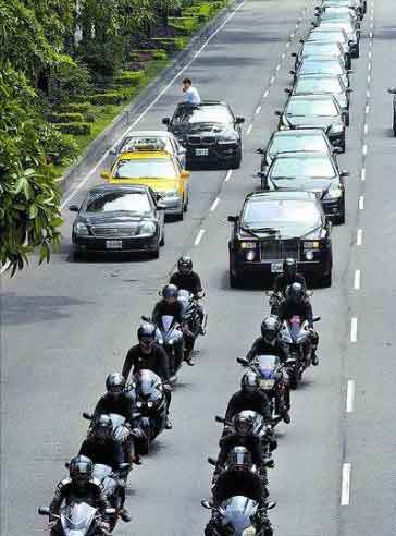 移靈車隊由12輛重機車及36輛勞斯萊斯、奔馳、BMW組成,排場盛大。圖片來源:臺灣《蘋果日報》
