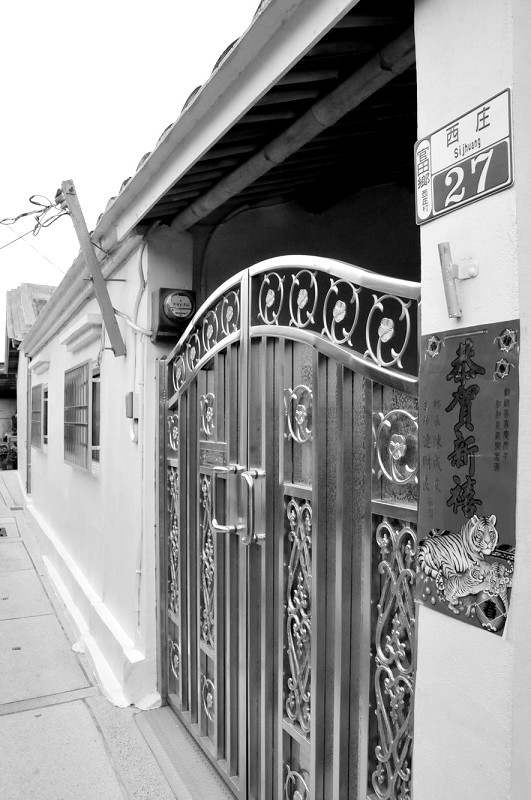 陳水扁老家在27號,一座閩南式的平層三合院。臨巷的墻上刷著粉黃色,嶄新的不銹鋼大門緊鎖,但里面傳出兩位婦女聊天的聲音。據村民介紹,陳水扁的媽媽陳李慎和弟弟陳文狩還住在這里。