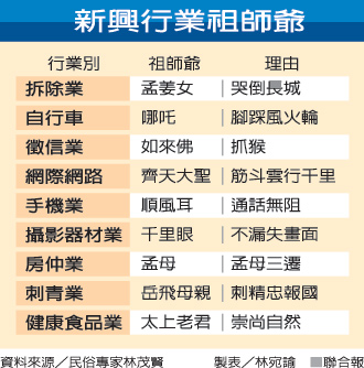 臺灣新興行業的祖師爺 來源:臺灣《聯合報》