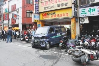 目擊的徐姓出租車司機說,昨天下午4時20分許,林明典(29歲)駕駛一輛深藍色廂型車,在三重市長榮路附近連續(xù)撞上停放路旁的汽、摩托車,造成至少3輛轎車、10輛摩托車和1輛客運226線公交車。