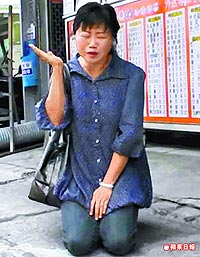涉嫌體罰女童的安親班主任,還曾入選臺中縣優良老師,昨天面對家長,一時情急竟當街下跪,自摑耳光,卻仍無法得到諒解。圖片來源:臺灣《蘋果日報》