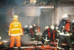 臺(tái)北市一棟民宅一樓,因存放爆竹,21日晚間9時(shí)不明原因起火,造成2死5傷,其中屋主2歲的兒子死亡,包括一名警消受傷。圖片來源:臺(tái)灣《中國(guó)時(shí)報(bào)》