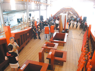 參觀者在仿造的鄭成功船上觀看 來源:臺(tái)灣《聯(lián)合報(bào)》