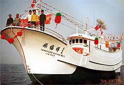 遭印尼漁工挾持的琉球籍漁船振福祥一六號。圖片來源:臺灣《中國時報》