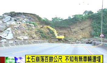 山崩發生在今天下午2時33分,大量土石崩落將路面覆蓋,基隆市消防局及臺當局“交通部高速公路局”已派人車前往搶救。消防局說,仍未確定是否有人車受困。