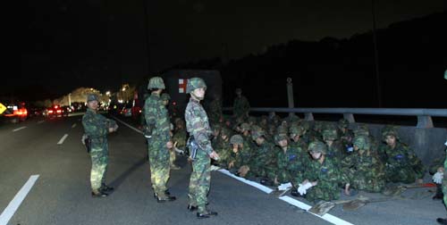 臺灣3號高速公路3.1公里處昨天下午發(fā)生嚴(yán)重山崩意外,臺軍在旁待命,必要時隨時準(zhǔn)備徒手開挖。(圖:《聯(lián)合報》)